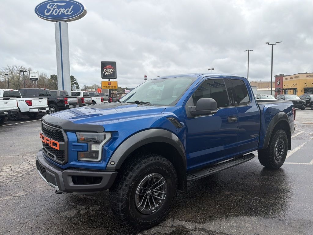 This 2017 Ford F-150 Raptor in Lightning Blue comes with the following features: 3.5L V6 10-Speed Automatic 4WD Equipment Group 801A Mid (10-Way Power Driver & Passenger Seats, Heated Leather 40/Console/40 Front Seats, Power-Adjustable Pedals, Power-Sliding Rear Window, and Radio: Single-CD/SiriusXM w/7 Speakers), 4WD, 17" Cast Aluminum Wheels, 17" Forged Aluminum Bead-Lock Capable Wheels, 4-Wheel Disc Brakes, 4.10 Front Axle w/Torsen Differential, 7 Speakers, 8-Way Power Driver's Seat w/Power Lumbar, ABS brakes, Air Conditioning, Alloy wheels, AM/FM radio: SiriusXM, Auto-dimming Rear-View mirror, Brake assist, CD player, Compass, Delay-off headlights, Driver door bin, Driver vanity mirror, Dual front impact airbags, Dual front side impact airbags, Electronic Locking w/4.10 Axle Ratio, Electronic Stability Control, Exterior Parking Camera Rear, Front anti-roll bar, Front Bucket Seats, Front Center Armrest, Front fog lights, Front License Plate Bracket, Front reading lights, Front wheel independent suspension, Fully automatic headlights, Illuminated entry, Integrated Trailer Brake Controller, Leather steering wheel, LED Side-Mirror Spotlights, Low tire pressure warning, Occupant sensing airbag, Outside temperature display, Overhead airbag, Overhead console, Panic alarm, Passenger door bin, Passenger vanity mirror, Power door mirrors, Power driver seat, Power Glass Heated Sideview Mirrors, Power steering, Power windows, Radio data system, Rear Parking Sensors, Rear step bumper, Rear window defroster, Remote keyless entry, Remote Start System, Security system, Speed control, Speed-sensing steering, Split folding rear seat, Spray-In Bedliner (Pre-Installed), Steering wheel mounted audio controls, SYNC, Tachometer, Telescoping steering wheel, Tilt steering wheel, Traction control, Trip computer, Unique Cloth/Leather Trim Seats, Variably intermittent wipers, and Voice-Activated Navigation. 4WD.