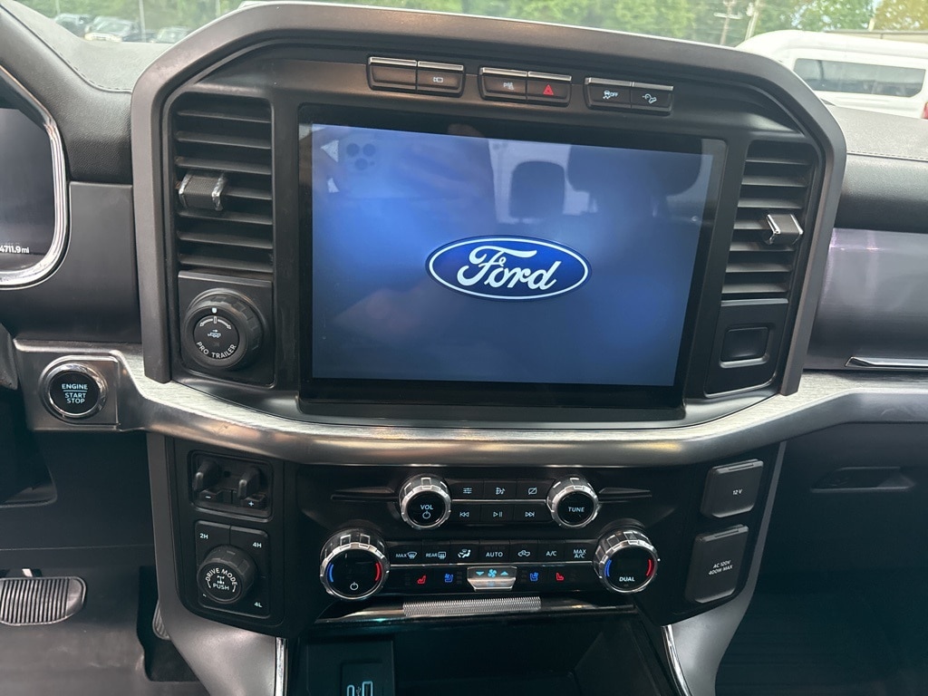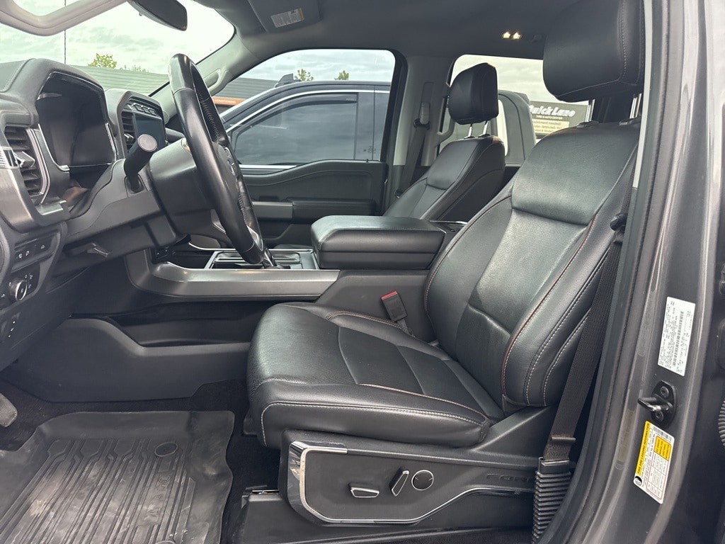 This 2021 Ford F-150 Lariat in Gray comes with the following features: 3.5L V6 EcoBoost 10-Speed Automatic 4WD Equipment Group 501A Mid (Onboard 400W Outlet, Radio: B&O Sound System by Bang & Olufsen, and Universal Garage Door Opener), Ford Co-Pilot360 Assist 2.0 (Connected Built-In Navigation, Evasive Steering Assist, Intelligent Adaptive Cruise Control w/Stop & Go, Intersection Assist, and Speed Sign Recognition), FX4 Off-Road Package, Lariat Chrome Appearance Package (6" Chrome Running Board, Chrome 2-Bar Grille w/4 Minor Bars, Chrome Door & Tailgate Handles w/Body-Color Bezel, Chrome Single-Tip Exhaust, Chrome Skull Caps on Exterior Mirrors, and Wheels: 18" Chrome-Like PVD), Trailer Tow Package (Class IV Trailer Hitch Receiver, Integrated Trailer Brake Controller, and Pro Trailer Backup Assist), 4WD, 18" Machined-Aluminum Wheels, 3.31 Axle Ratio, 360 Degree Camera, 4-Wheel Disc Brakes, 7 Speakers, ABS brakes, Adjustable pedals, Air Conditioning, Alloy wheels, AM/FM radio: SiriusXM with 360L, Auto High-beam Headlights, Auto Start-Stop Removal, Auto-dimming door mirrors, Auto-dimming Rear-View mirror, Automatic temperature control, Brake assist, Bumpers: chrome, Compass, Delay-off headlights, Driver door bin, Driver vanity mirror, Dual front impact airbags, Dual front side impact airbags, Electronic Locking w/3.55 Axle Ratio, Electronic Stability Control, Emergency communication system: SYNC 4 911 Assist, Exterior Parking Camera Rear, Front anti-roll bar, Front Center Armrest w/Storage, Front dual zone A/C, Front fog lights, Front reading lights, Front wheel independent suspension, Fully automatic headlights, Heated door mirrors, Heated front seats, Illuminated entry, Leather-Trimmed 40/20/40 Front Seat, LED Sideview Mirror Spotlights, Low tire pressure warning, Memory seat, Navigation system: Connected Navigation (90-Day Trial), Occupant sensing airbag, Outside temperature display, Overhead airbag, Overhead console, Panic alarm, Passenger door bin, Passenger vanity mirror, Pedal memory, Power door mirrors, Power driver seat, Power passenger seat, Power steering, Power windows, Radio data system, Radio: AM/FM SiriusXM w/360L, Rear reading lights, Rear seat center armrest, Rear step bumper, Rear window defroster, Remote keyless entry, Security system, Speed control, Speed-sensing steering, Split folding rear seat, Steering wheel mounted audio controls, SYNC 4 w/Enhanced Voice Recognition, Tachometer, Telescoping steering wheel, Tilt steering wheel, Traction control, Tray Style Floor Liner (47W), Trip computer, Turn signal indicator mirrors, Variably intermittent wipers, Ventilated front seats, and Voltmeter. 4WD.