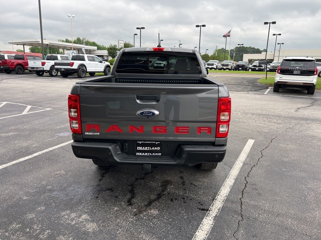 This 2023 Ford Ranger XL in Gray Metallic comes with the following features: EcoBoost 2.3L I4 GTDi DOHC Turbocharged VCT 10-Speed Automatic 4WD Equipment Group 101A High (6 Speakers, Cruise Control, Day/Night Rear-View Mirror, Perimeter Anti-Theft Alarm, Power Glass Sideview Mirrors, Remote Key Fob w/Tailgate Lock, and SYNC), FX4 Off-Road Package (FX4 Off-Road Box Decal, Off-Road Screen in Cluster, Off-Road Tuned Suspension, and Terrain Management System), STX Appearance Package (Front Premium Cloth Bucket Seats, Halogen Fog Lamps, STX Box Decal, and Wheels: 17" Silver-Painted Aluminum), Trailer Tow Package (Class IV Trailer Hitch Receiver), 4WD, 4 Speakers, 4-Wheel Disc Brakes, 4G LTE Wi-Fi Hotspot Removal, ABS brakes, Air Conditioning, AM/FM radio, AM/FM Stereo, Auto Start-Stop Removal, Auto-dimming Rear-View mirror, Brake assist, Compass, Delay-off headlights, Driver door bin, Dual front impact airbags, Dual front side impact airbags, Electronic Stability Control, Exterior Parking Camera Rear, Front anti-roll bar, Front Bucket Seats, Front Center Armrest, Front Cloth Bucket Seats, Front wheel independent suspension, Fully automatic headlights, Illuminated entry, Low tire pressure warning, Manual-Sliding Rear Window, Occupant sensing airbag, Overhead airbag, Passenger door bin, Power steering, Power windows, Rear Parking Sensors, Rear seat center armrest, Rear step bumper, Speed-sensing steering, Steering wheel mounted audio controls, Telescoping steering wheel, Tilt steering wheel, Traction control, Trip computer, Variably intermittent wipers, Voltmeter, and Wheels: 16" Silver Steel. 4WD.