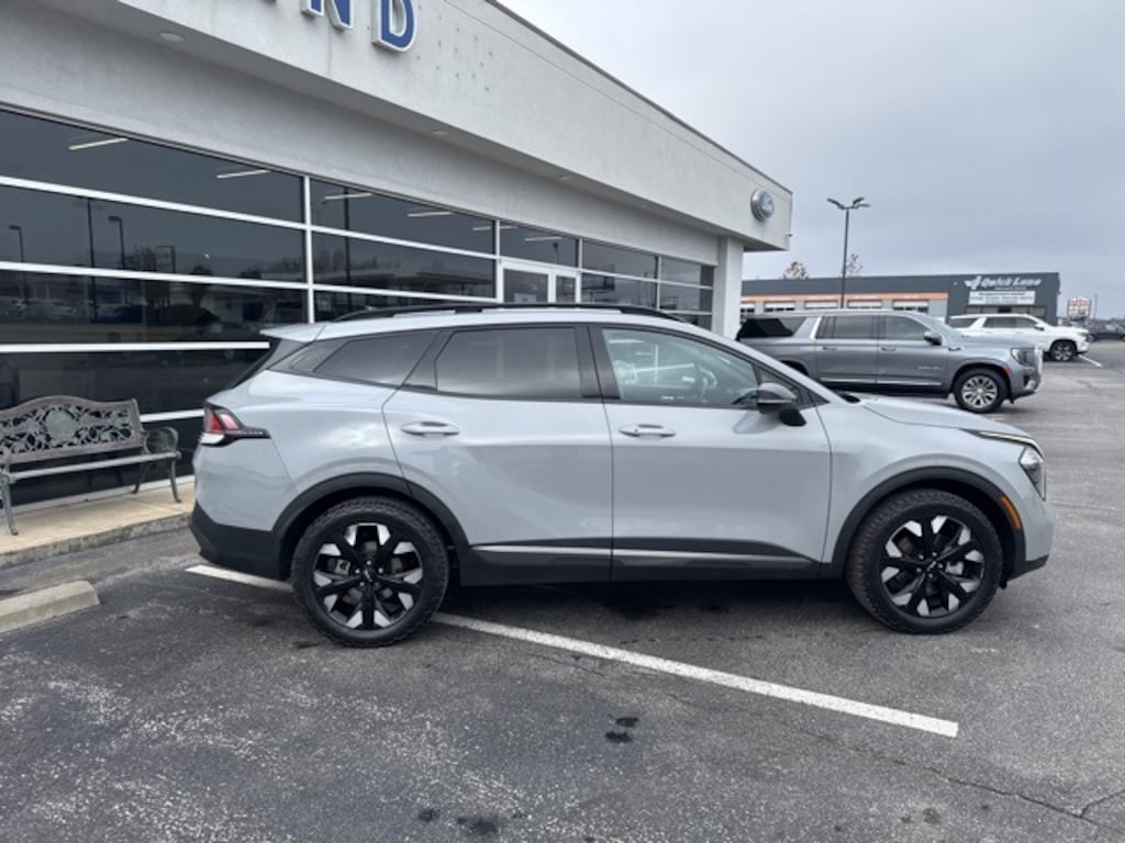 This 2023 Kia Sportage X-Line in Wolf Gray comes with the following features: I4 8-Speed Automatic AWD AWD, 4-Wheel Disc Brakes, 6 Speakers, ABS brakes, Air Conditioning, Alloy wheels, AM/FM radio: SiriusXM, Apple CarPlay & Android Auto, Auto High-beam Headlights, Automatic temperature control, Axle Ratio: 3.648, Brake assist, Bumpers: body-color, Cargo Cover, Cargo Mat, Cargo Net Hybrid w/o Audio, Carpet Floor Mats X-Line, Compass, Delay-off headlights, Driver door bin, Driver vanity mirror, Dual front impact airbags, Dual front side impact airbags, Electronic Stability Control, Emergency communication system, Four wheel independent suspension, Front anti-roll bar, Front Bucket Seats, Front Center Armrest, Front dual zone A/C, Fully automatic headlights, harman/kardon® Speakers, Heated door mirrors, Heated Front Bucket Seats, Heated front seats, Illuminated entry, Leather Shift Knob, Leather steering wheel, Low tire pressure warning, Navigation System, Occupant sensing airbag, Outside temperature display, Overhead airbag, Overhead console, Panic alarm, Passenger door bin, Passenger vanity mirror, Power door mirrors, Power driver seat, Power steering, Power windows, Premium Leatherette Seat Trim, Radio: AM/FM/HD Audio System, Rain sensing wipers, Rear anti-roll bar, Rear seat center armrest, Rear window defroster, Rear window wiper, Remote keyless entry, Security system, Speed control, Speed-sensing steering, Split folding rear seat, Spoiler, Steering wheel mounted audio controls, Tachometer, Telescoping steering wheel, Tilt steering wheel, Traction control, Trip computer, Turn signal indicator mirrors, Variably intermittent wipers, Wheel Locks, and Wheels: 19" Gloss Black Alloy. AWD.